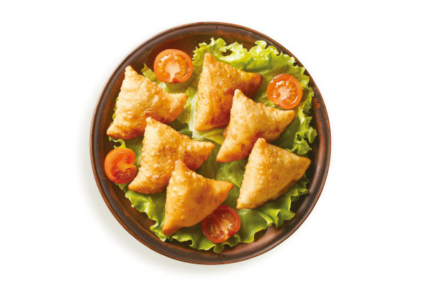 페이스트리 반죽으로 만든 피 속에 감자, 완두, 다진 고기 등을 향신료로 간을 해서 채워 넣은 후, 기름에 튀겨 낸 음식으로 모양은 만두와 유사하다. 전통적으로 세모꼴이지만 다른 모양으로 만들기도 한다. 크기와 속 재료 역시 다양하다. 가정에서는 주로 인도식 티(차이)와 함께 먹는다. 간단한 식사 대용이며 파티나 행사에도 빠지지 않는 음식 중 하나이다.